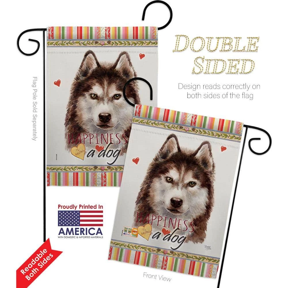 Breeze Decor 13 in. x 18.5 in. Brown Siberian Husky Happiness Dog Garden Flag Double-Sided Readable Both Sides Animals Decorative