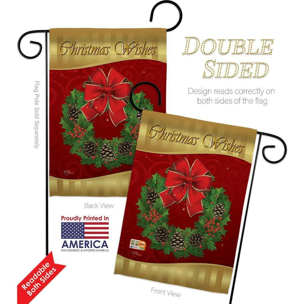 Breeze Decor 13 in. x 18.5 in. Christmas Wishes Garden Flag Double-Sided Winter Decorative Vertical Flags