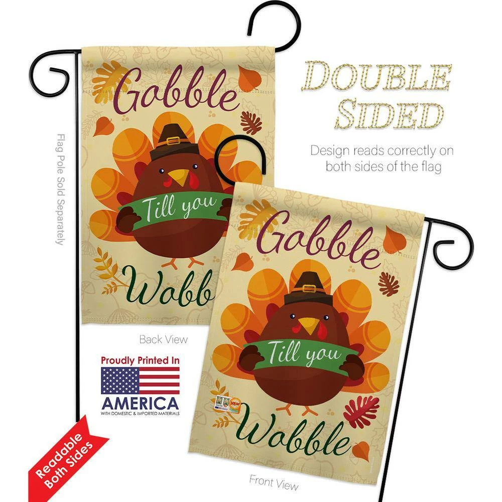 Breeze Decor 13 in. x 18.5 in. Gobble Till You Wabble Garden Flag Double-Sided Fall Decorative Vertical Flags