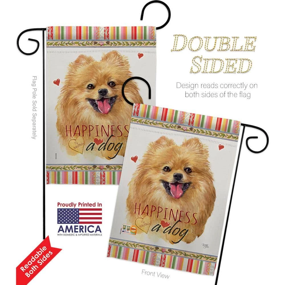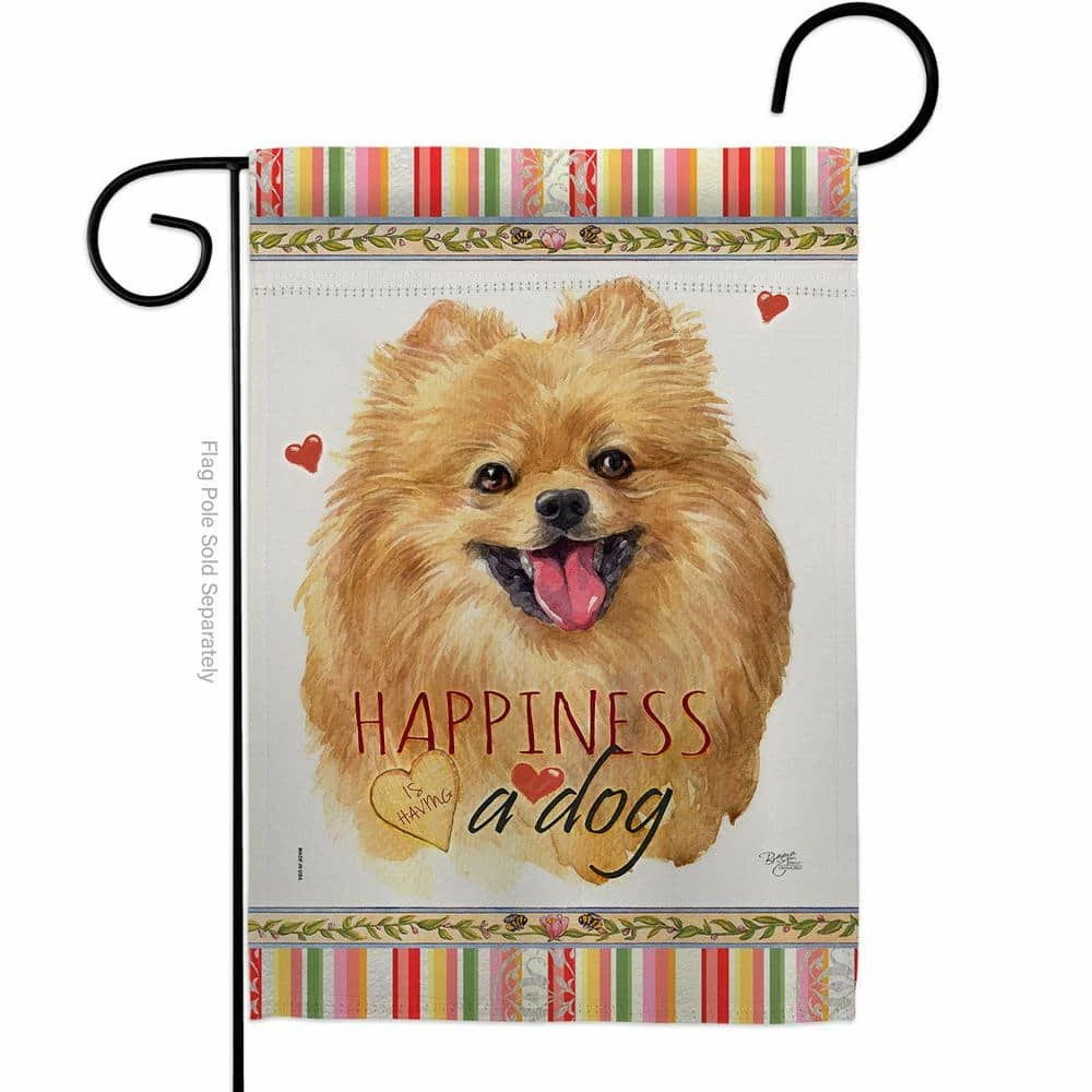 Breeze Decor 13 in. x 18.5 in. Pomeranian Happiness Dog Garden Flag Double-Sided Readable Both Sides Animals Decorative
