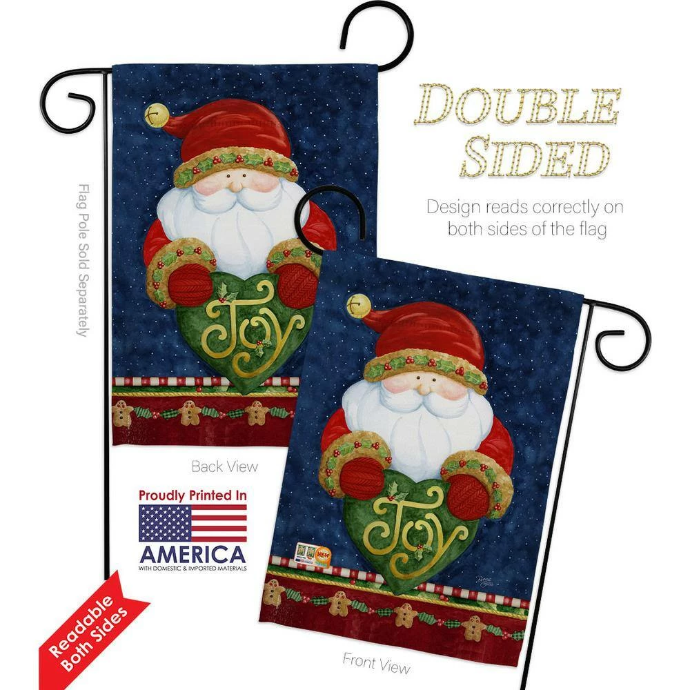 Breeze Decor 13 in. x 18.5 in. Santa Holding Joy Heart Christmas Garden Flag Double-Sided Winter Decorative Vertical Flags