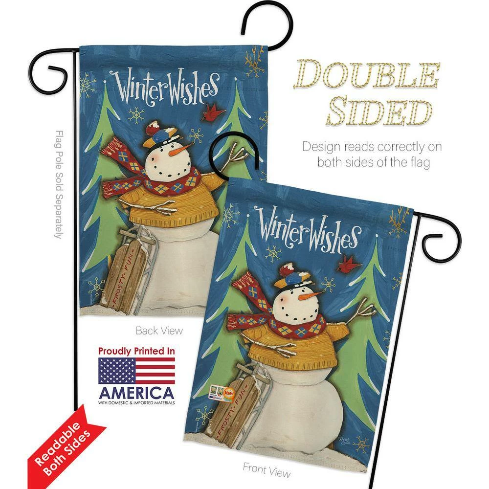 Breeze Decor 13 in. x 18.5 in. Winter Wishes Snowman Wonderland Garden Flag Double-Sided Decorative Vertical Flags