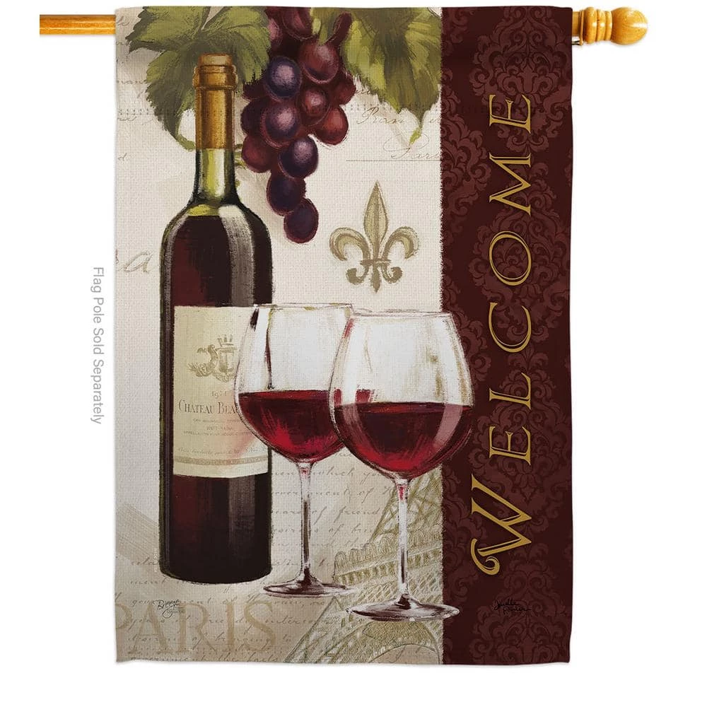 Breeze Decor 2.3 ft. x 3.3 ft. Welcome Wines Wine House Flag 2-Sided Beverages Decorative Vertical Flags
