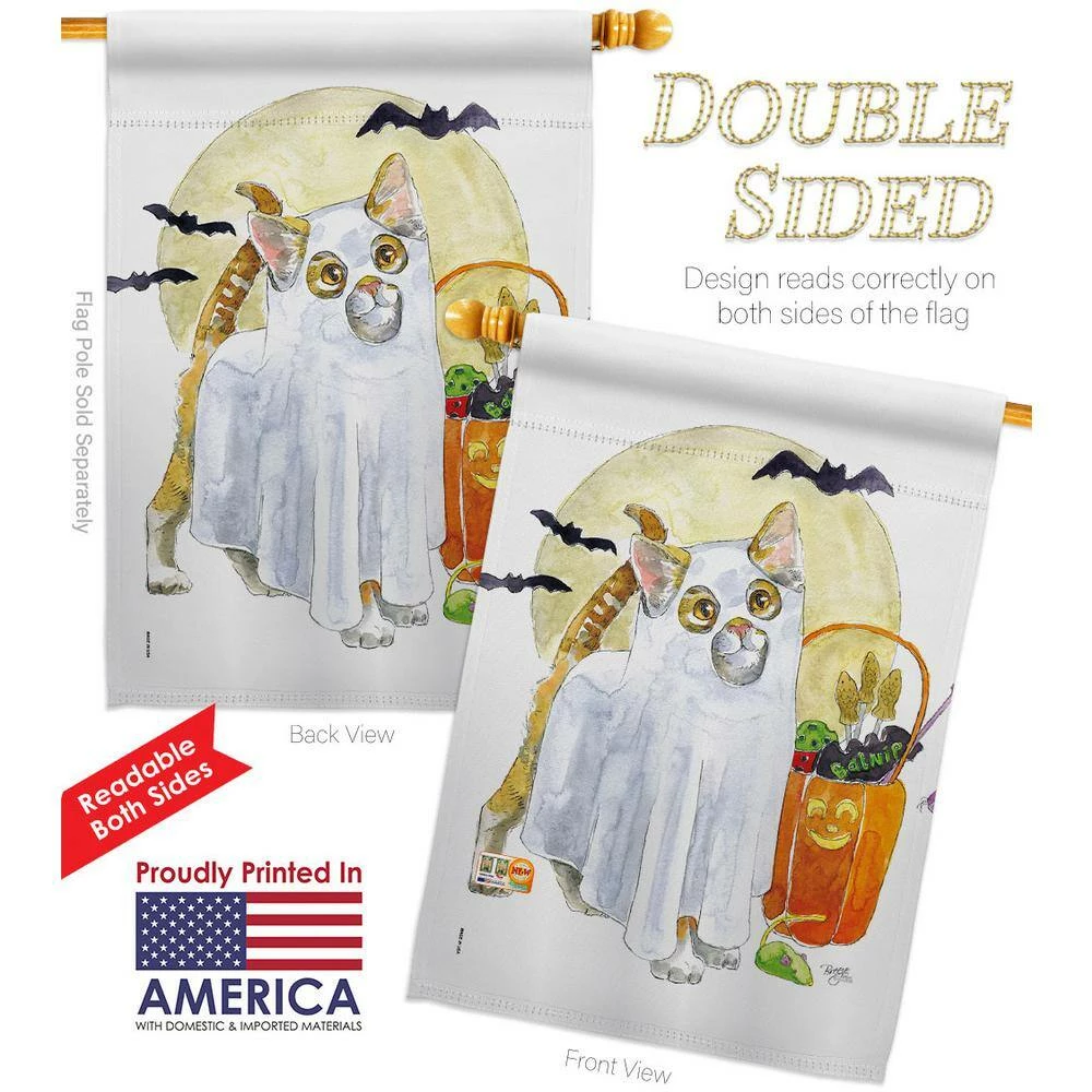 Breeze Decor 28 in. x 40 in. Ghost Cat Fall House Flag Double-Sided Decorative Vertical Flags