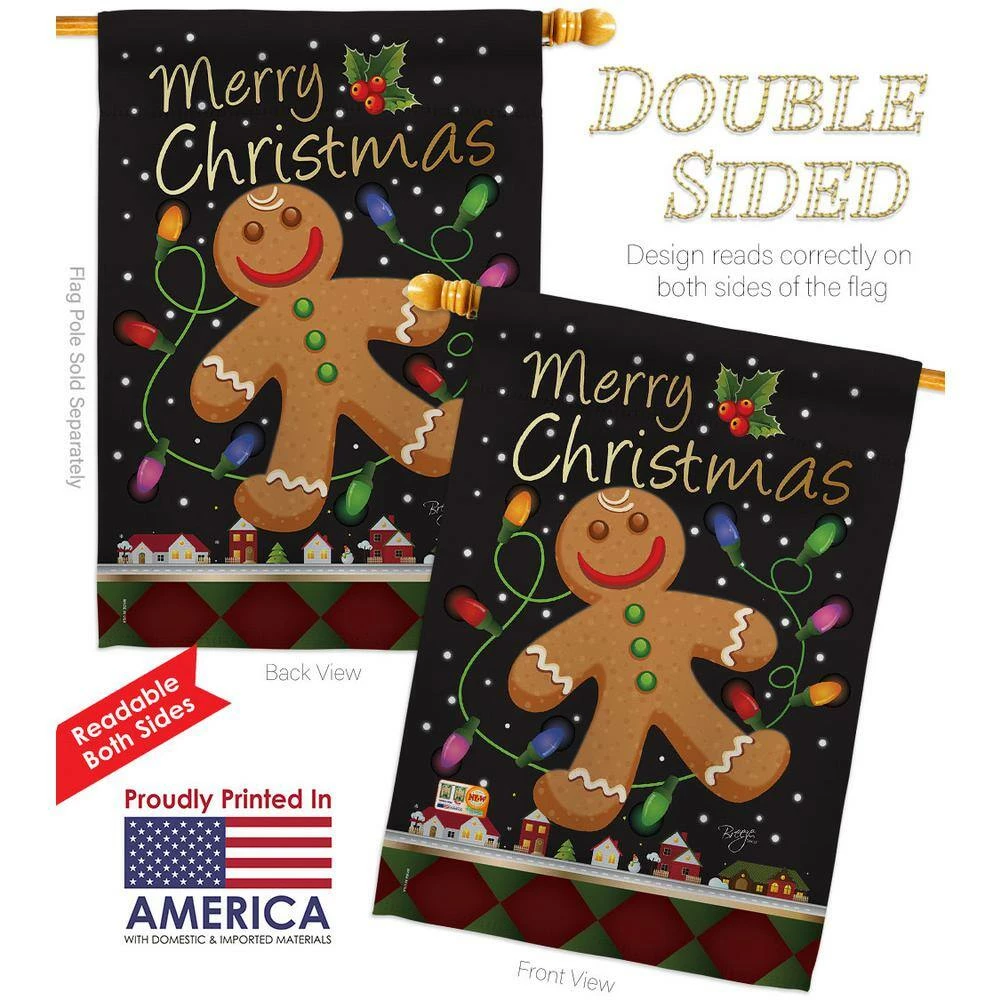 Breeze Decor 28 in. x 40 in. Gingerbread Christmas House Flag Double-Sided Winter Decorative Vertical Flags