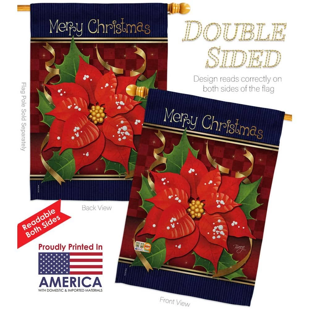 Breeze Decor 28 in. x 40 in. Poinsettia Love Christmas House Flag Double-Sided Winter Decorative Vertical Flags