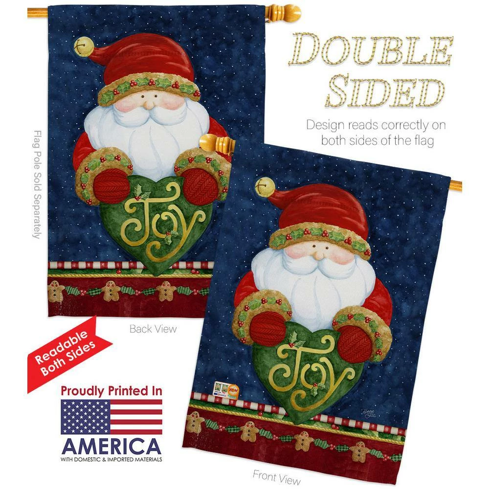 Breeze Decor 28 in. x 40 in. Santa Holding Joy Heart Christmas House Flag Double-Sided Winter Decorative Vertical Flags
