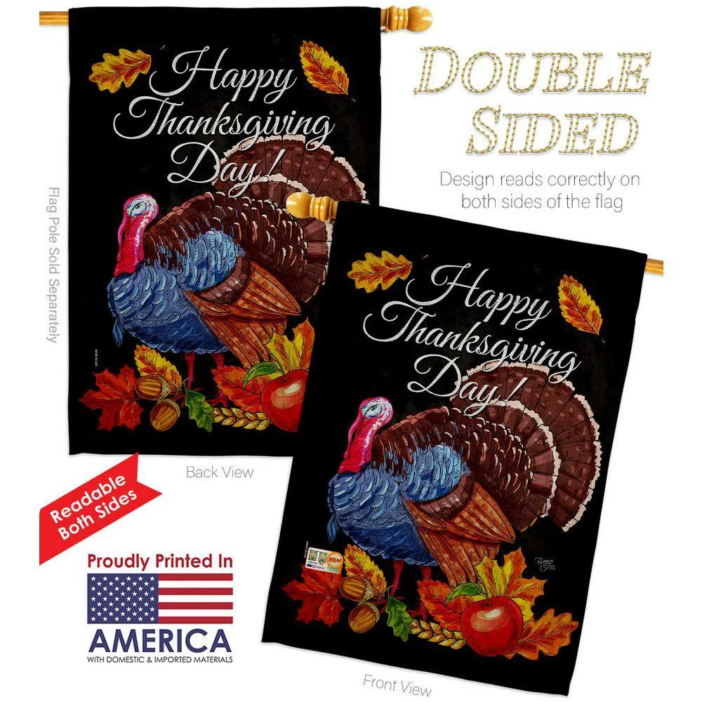 Breeze Decor 28 in. x 40 in. Thanksgiving Turkey House Flag Double-Sided Readable Both Sides Fall Thanksgiving Decorative