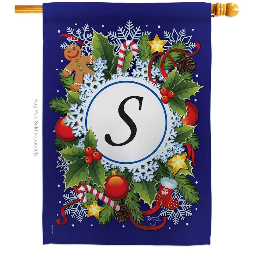 Breeze Decor 28 in. x 40 in. Winter S Initial Wonderland House Flag Double-Sided Decorative Vertical Flags