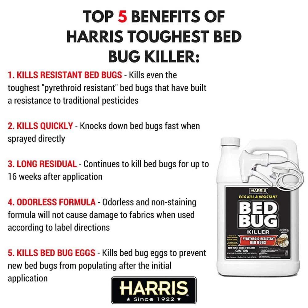 Harris Egg Kill and Resistant Bed Bug Killer, 1 Gal. Ready-to-use (3-Pack) kills bed bugs that have become resistant to pyrethroids and their eggs. Treat mattress seams and folds, box springs, furniture, closets, carpet edges and baseboards. Also treats luggage.