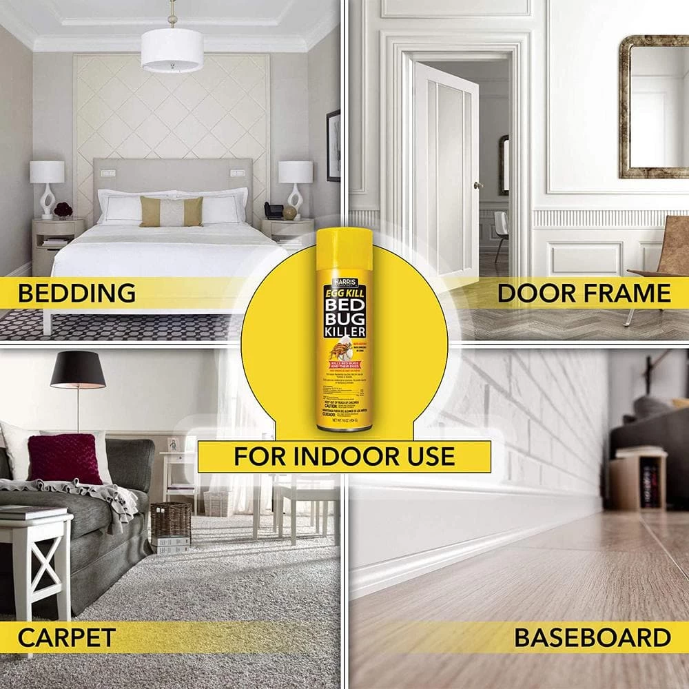 16 oz. Harris Egg Kill Bed Bug Killer aerosol is ready to use and Kills Bed Bugs & Their Eggs When Spray Dries. The high pressure aerosol spray helps to treat deep into cracks and crevices where bed bugs are hiding. Treat mattresses, box springs, carpet, bedding, floors, walls and drapes. Can also be used on luggage, garments and more.