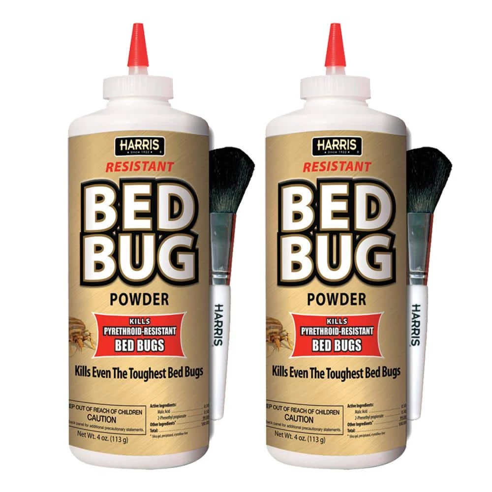 Harris Resistant Bed Bug Powder (2-pack) kills pyrethroid resistant bed bugs. The powder is long-lasting. Container covers approximately 200 sq. ft. (2-pack covers approximately 400 sq. ft.) Easy to use applicator brush is included. Value 2-pack treats multiple areas.