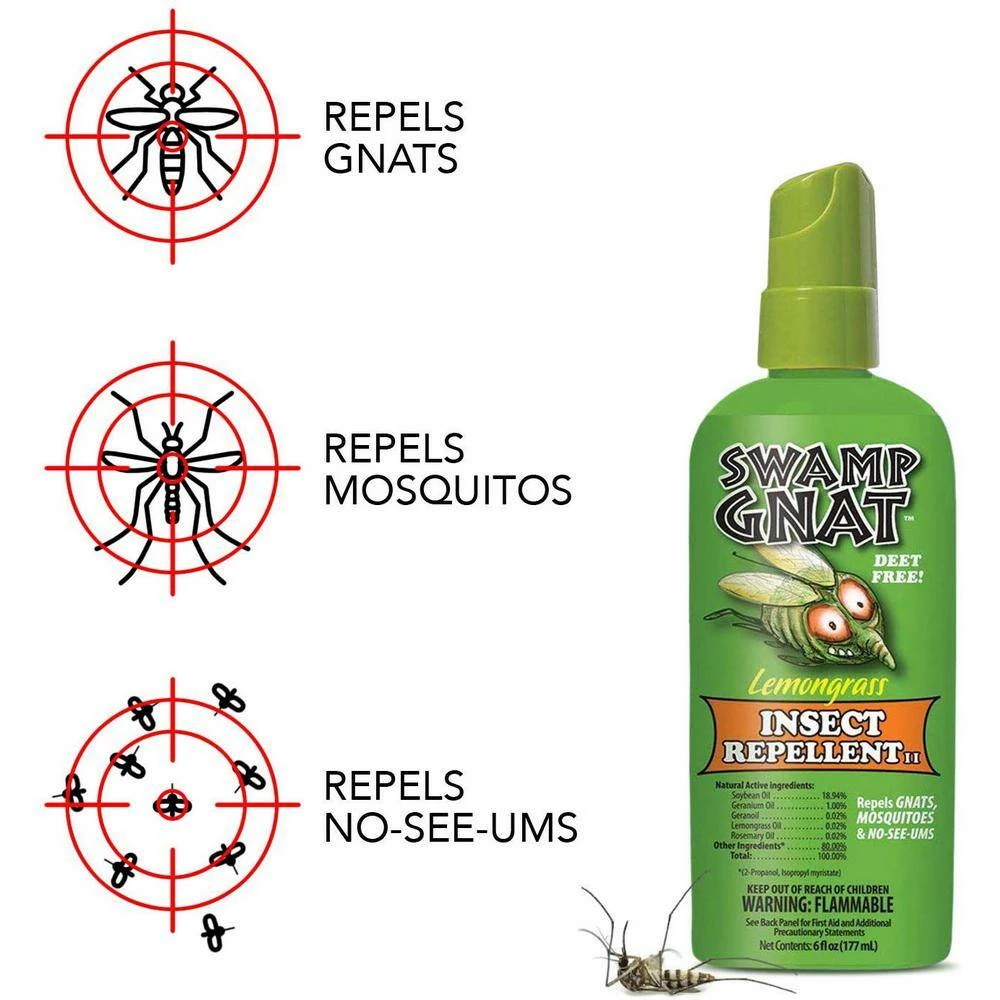 Harris Swamp Gnat Insect Repellent Repels mosquitoes, Gnats, flies and no-see-ums with plant oils including geraniol, soybean, rosemary, geranium and Lemongrass. Swamp Gnat is made with plant based active ingredients and is Completely DEET and pesticide free and can be used with pets and children. Swamp Gnat is long-lasting and has a pleasant scent. The non-greasy formula feels light and fresh on the skin and is resistant to sweat. Value 2-Pack for multiple treatments.