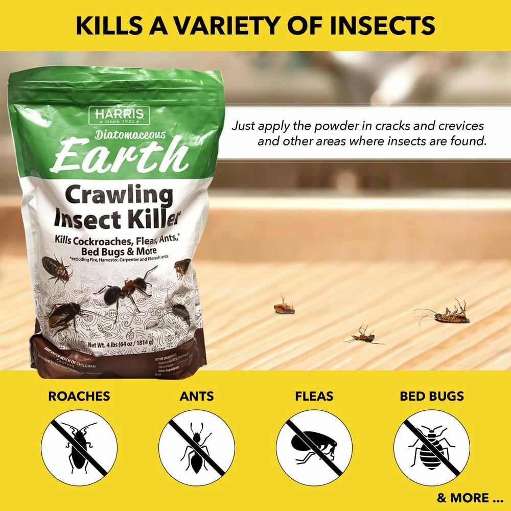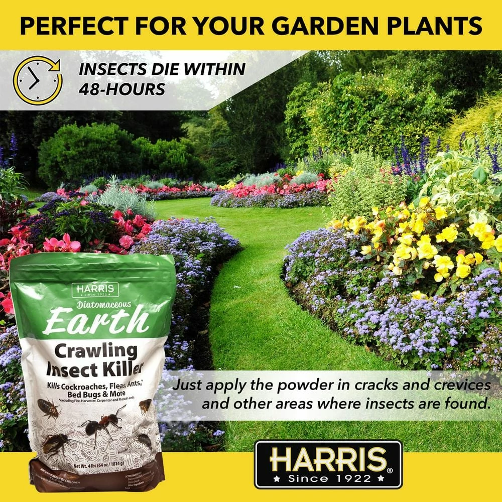 64 oz. (4 lbs.) Diatomaceous Earth Crawling Insect Killer kills cockroaches, fleas, ants, bed bugs, grasshoppers and more. This ready-to-use insecticide works indoors and outdoors and is perfect to protect your garden plants. Insects that come in contact or ingest this powder die within 48-hours. Just apply the powder in cracks and crevices and other areas where insects are found. Value 2-Pack for multiple treatments.