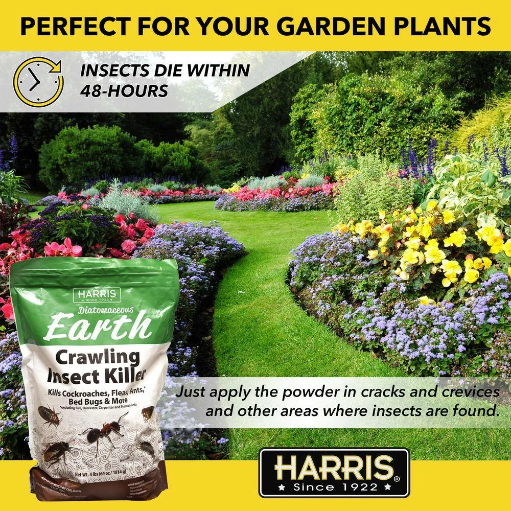 64 oz. (4 lbs.) Diatomaceous Earth Crawling Insect Killer kills cockroaches, fleas, ants, bed bugs, grasshoppers and more. This ready-to-use insecticide works indoors and outdoors and is perfect to protect your garden plants. Insects that come in contact or ingest this powder die within 48-hours. Just apply the powder in cracks and crevices and other areas where insects are found. Value 4-Pack for multiple treatments.