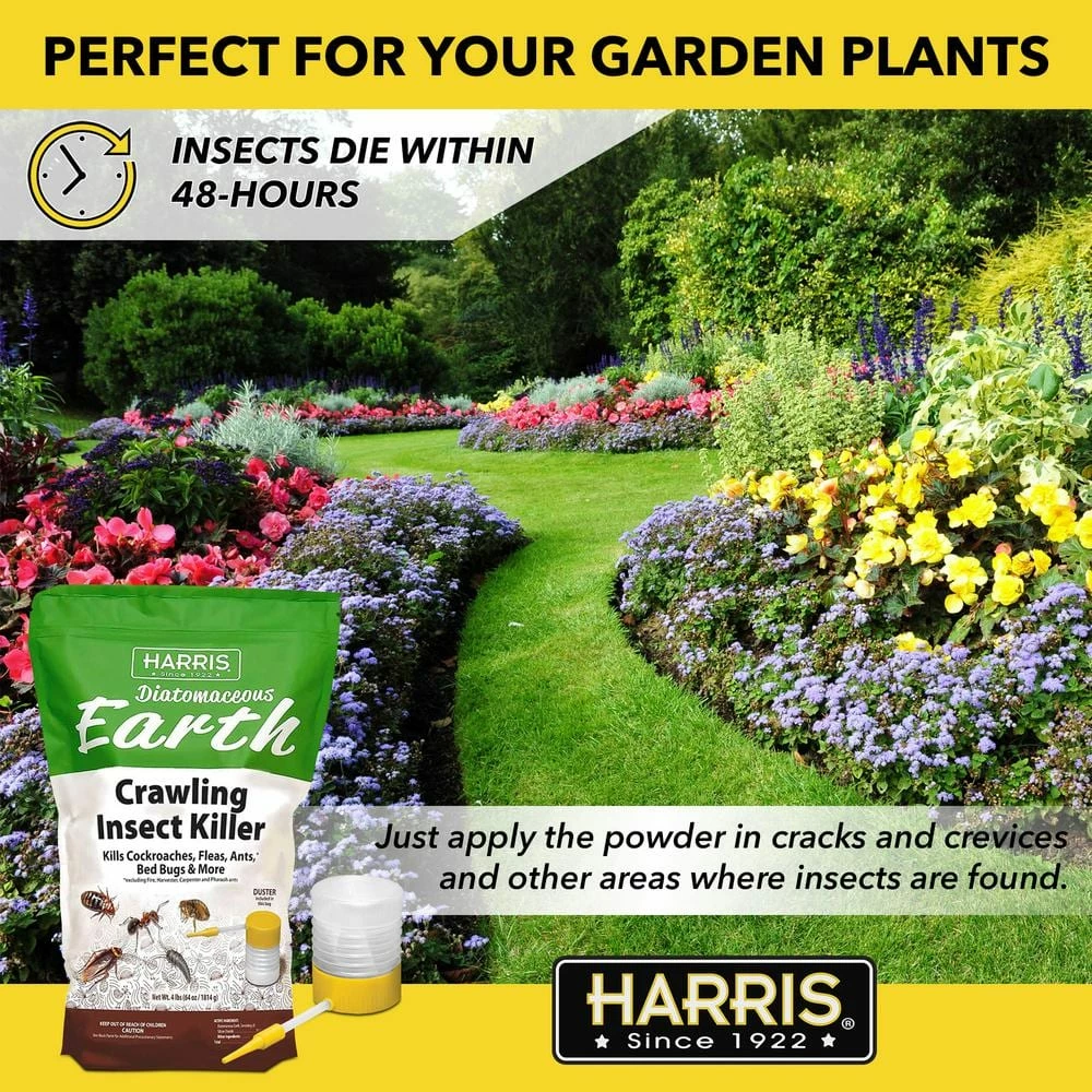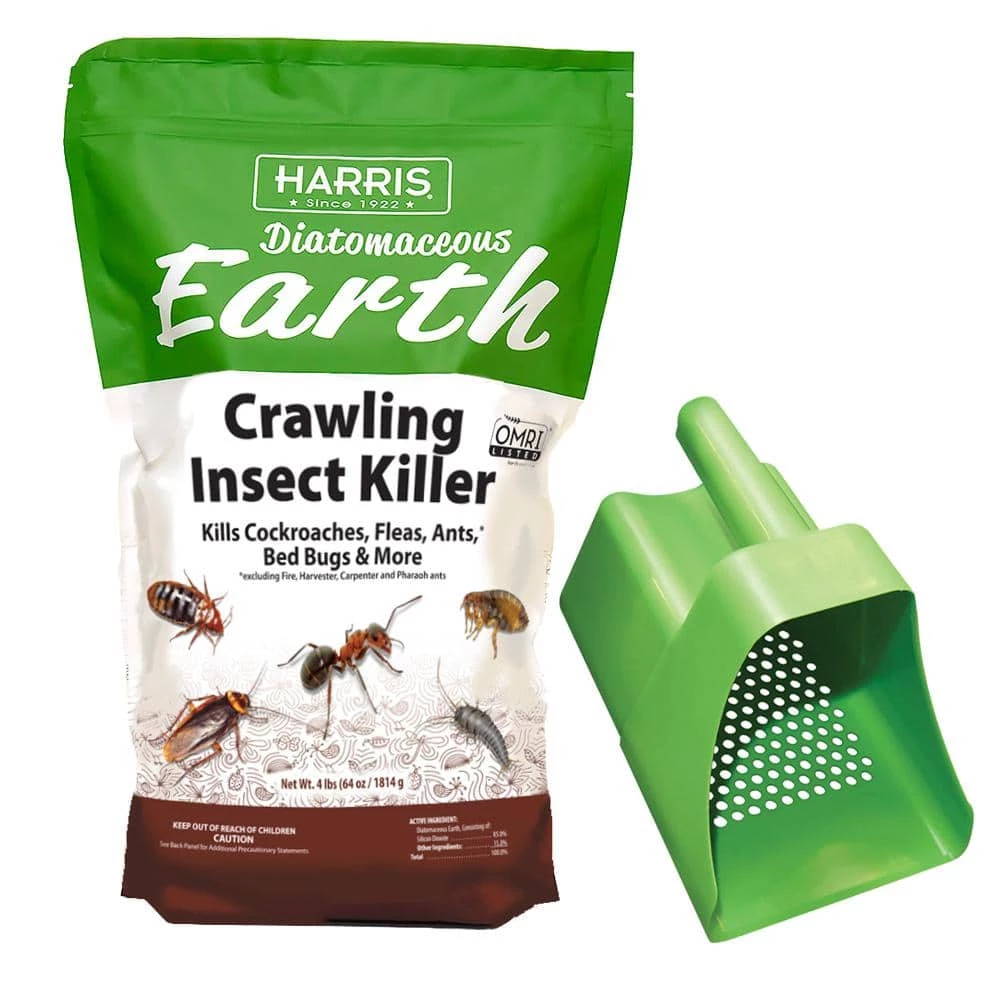 64 oz. (4 lbs.) Diatomaceous Earth Crawling Insect Killer kills cockroaches, fleas, ants, bed bugs, grasshoppers and more. This ready-to-use insecticide works indoors and outdoors and is perfect to protect your garden plants. Insects that come in contact or ingest this powder die within 48-hours. Just apply the powder in cracks and crevices and other areas where insects are found. Sifting Scoop Applicator included for easy application.
