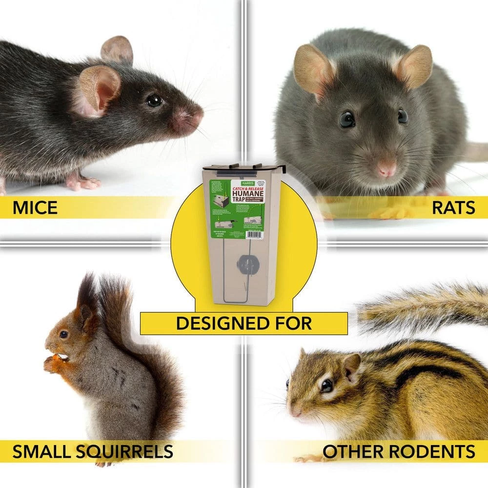 - Humane squirrel and rodent trap is great for catching small squirrels, chipmunks, rats, mice and other rodents