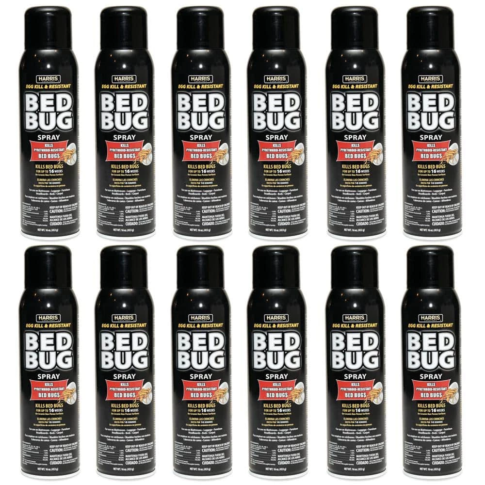 Harris Egg Kill and Resistant Bed Bug Spray kills bed bugs for up to 16-weeks. Use on mattresses (folds and tufts), luggage, furniture, headboards, beds and carpet. Kills pyrethroid resistant bed bugs and their eggs. Value 12-pack for multiple treatments.