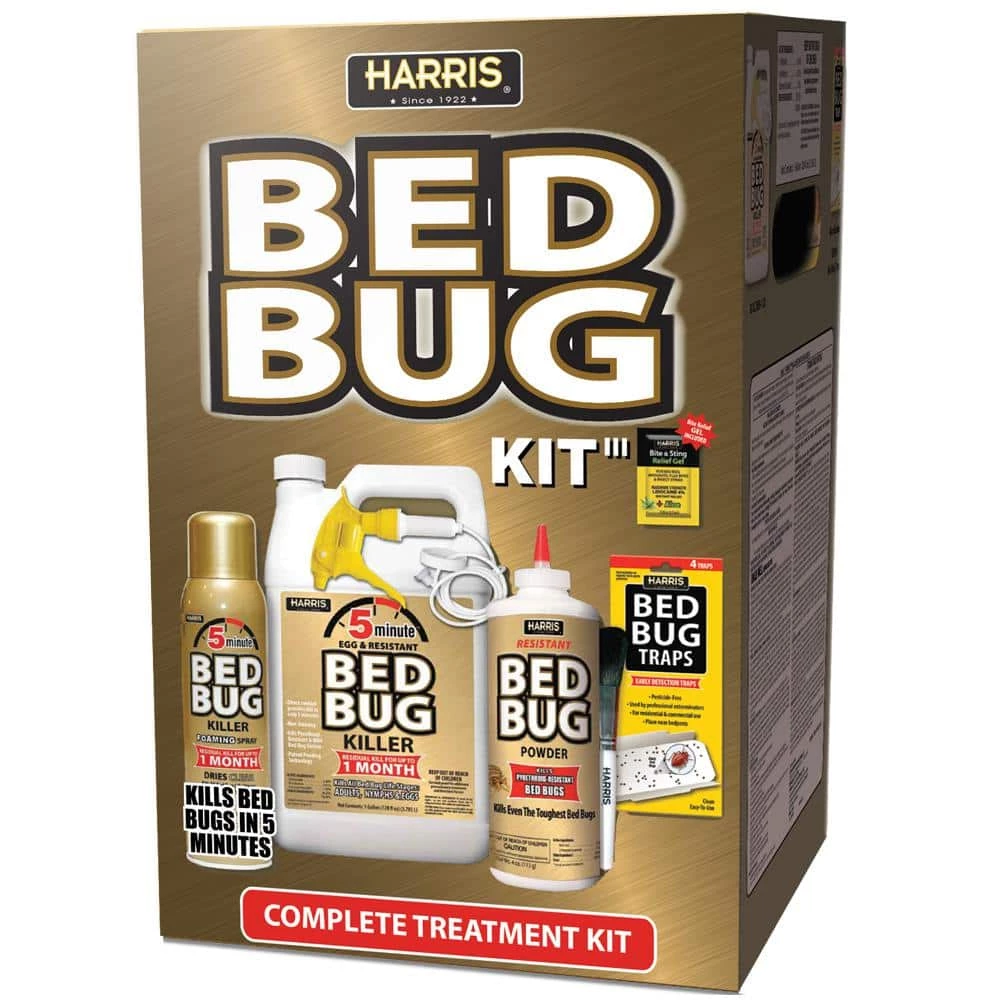 Harris Gold Bed Bug Kit includes a 1 Gal. 5-Minute Egg and Resistant Bed Bug Killer, 4 oz. Resistant Bed Bug Powder, a 16 oz. 5-Minute Bed Bug Killer Foaming Spray, 1-pack of Bed Bug Traps and 1 Bed Bug Bite Relief Gel Sample Pack. A great combination of products to attack your bed bug problem. Products are easy to use and effective results begin after the spray dries. Products are odorless, non-staining and long-lasting.