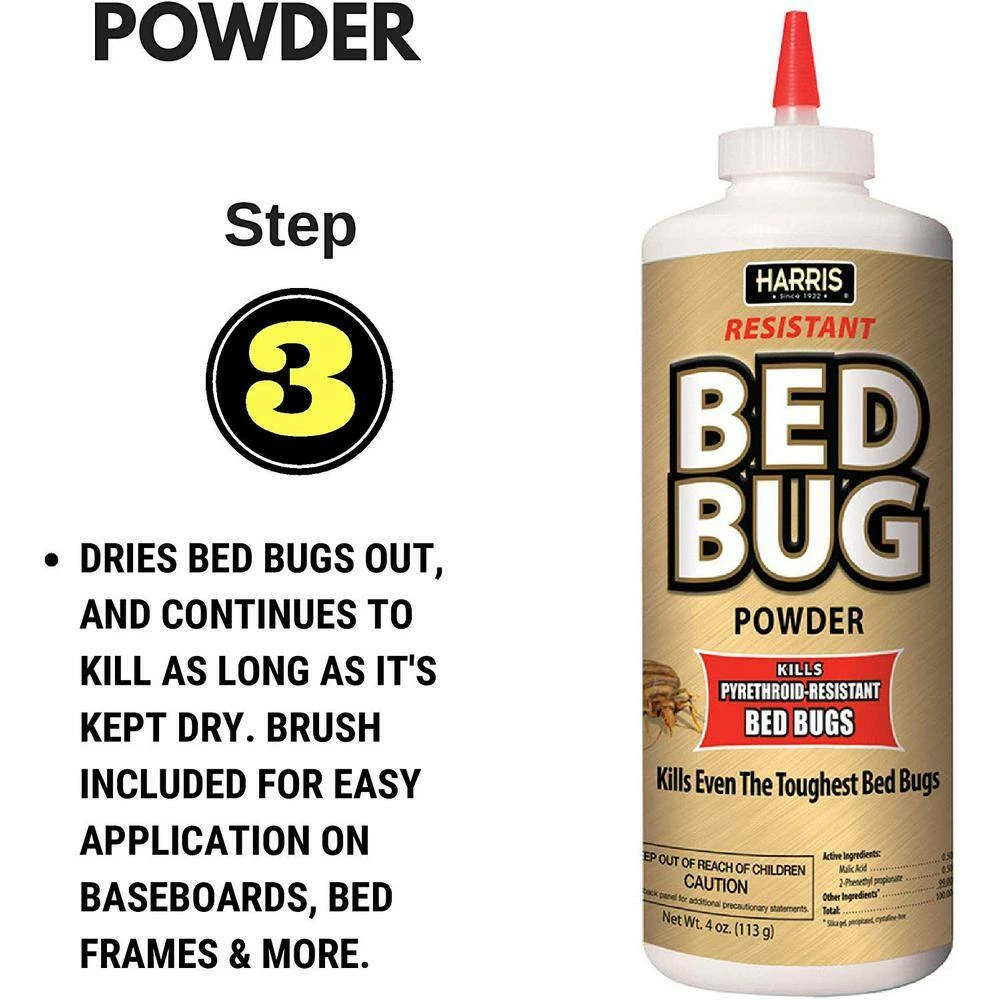 - 4 oz. resistant bed bug powder kills pyrethroid resistant bed bugs, the powder is long-lasting, powder can be used in wall voids, cracks and crevices and on furniture, easy to use applicator brush is included