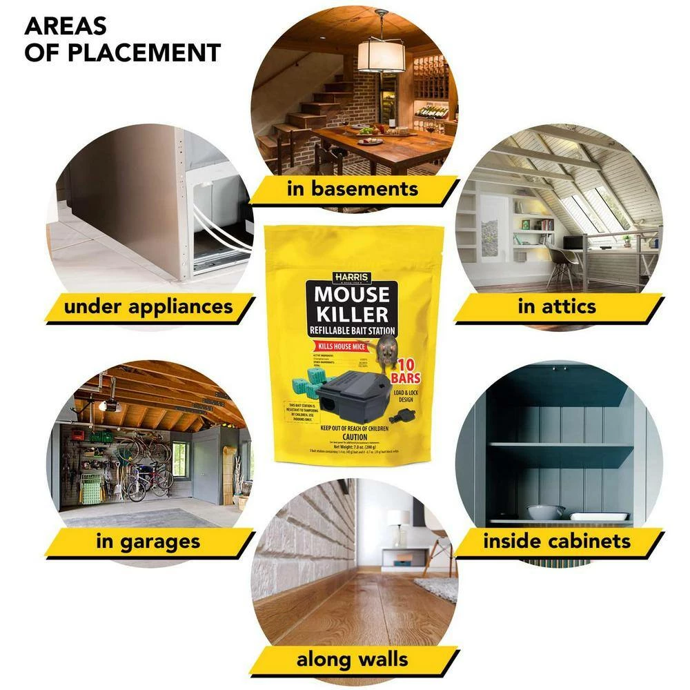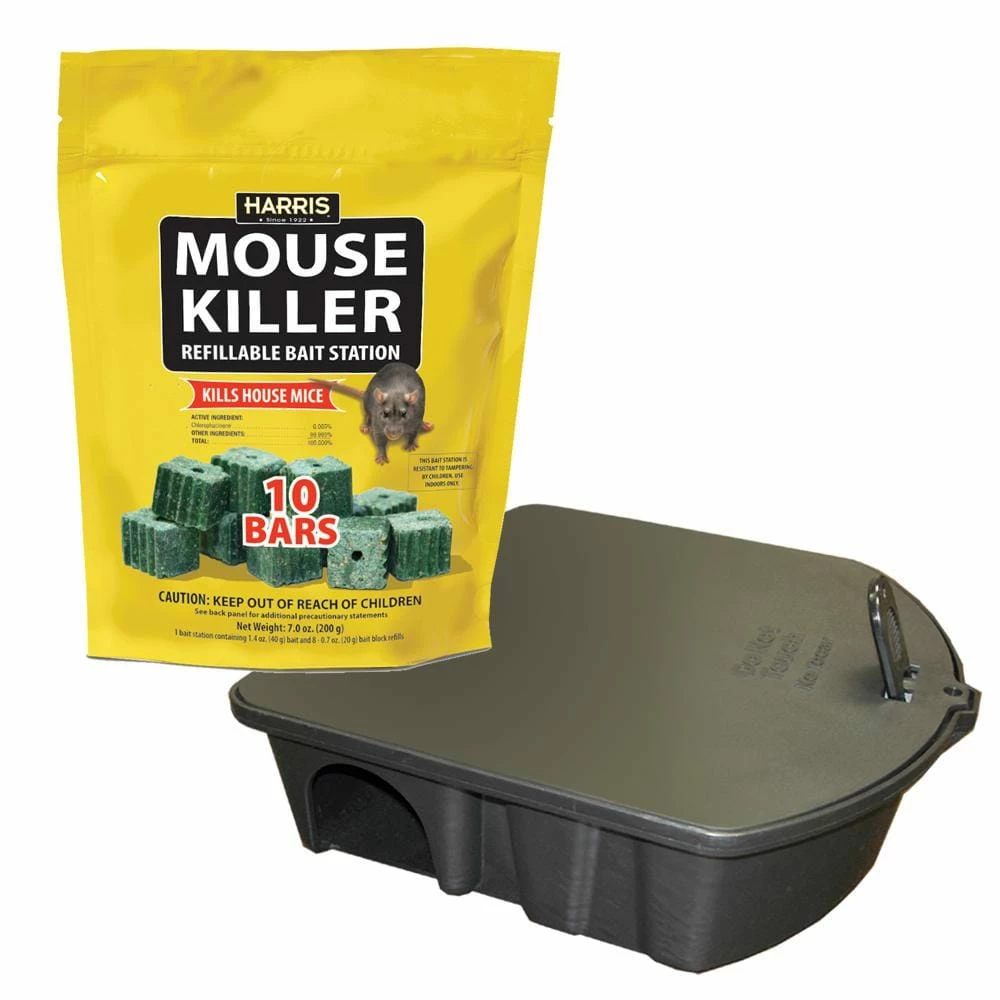 Harris Rat and Mouse Bait Station is an ideal tool for quick execution of rodent populations. The load and lock design is easy to use. Simply place stations near signs of rodent activity. It is tamper resistant to kids and pets. The bait station is also weather resistant, making it perfect for indoor and outdoor use. Harris Mouse Killer with a refillable bait station kills mice and rats. Package contains 10 bars and the refillable bait station is approved for use around pets. The bait station is resistant to tampering by children with its load and lock design.