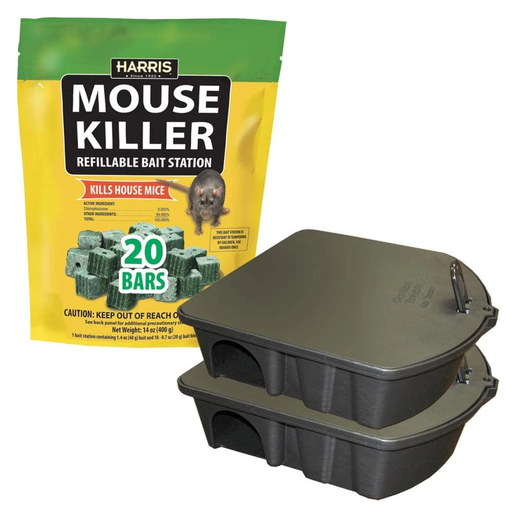 ​​Harris Rat and Mouse Bait Station is an ideal tool for quick execution of rodent populations. The load and lock design is easy to use. Simply place stations near signs of rodent activity such as in attics, under appliances, inside cabinets, in garages and more. It is tamper resistant to kids and pets. The bait station is also weather resistant, making it perfect for indoor and outdoor use. Harris Mouse Killer with a refillable bait station kills mice and rats. Package contains 20 bars and the refillable bait station is approved for use around pets. The bait station is resistant to tampering by children with its load and lock design.