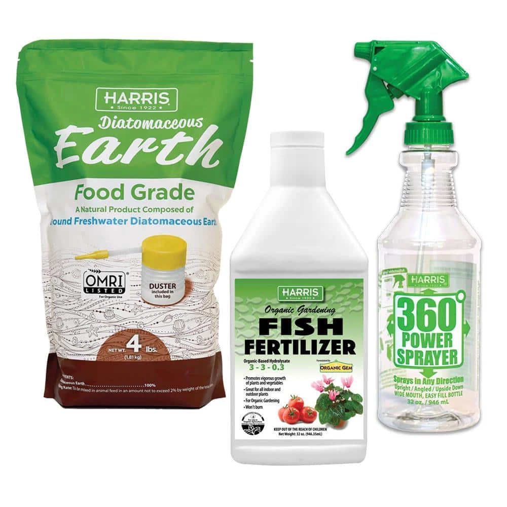 Harris Liquid Fish Fertilizer uses trace minerals and micronutrients naturally derived from fish to stimulate healthy growth in the root system of plants and vegetables. It’s great for tomatoes and vegetables, 3-3-0.3, as well as house plants, outdoor plants, lawns, trees and shrubs. Harris Ground Fresh 100% Diatomaceous Earth is a natural product. It is OMRI Listed with the Organic Minerals Research Institute and meets organic use standards. Use to protect your garden plants, in animal feed as well as multiple other uses. Professional Powder Duster included for easy applicationthe32 oz. 360° All Angle Professional Sprayer is great at spraying upright, angled, and upside down with out leaking. It’s heavy-duty to spray and resist chemicals, cleaners and solvents the adjustable nozzle sprays a stream or fine mist.