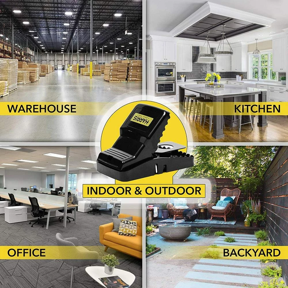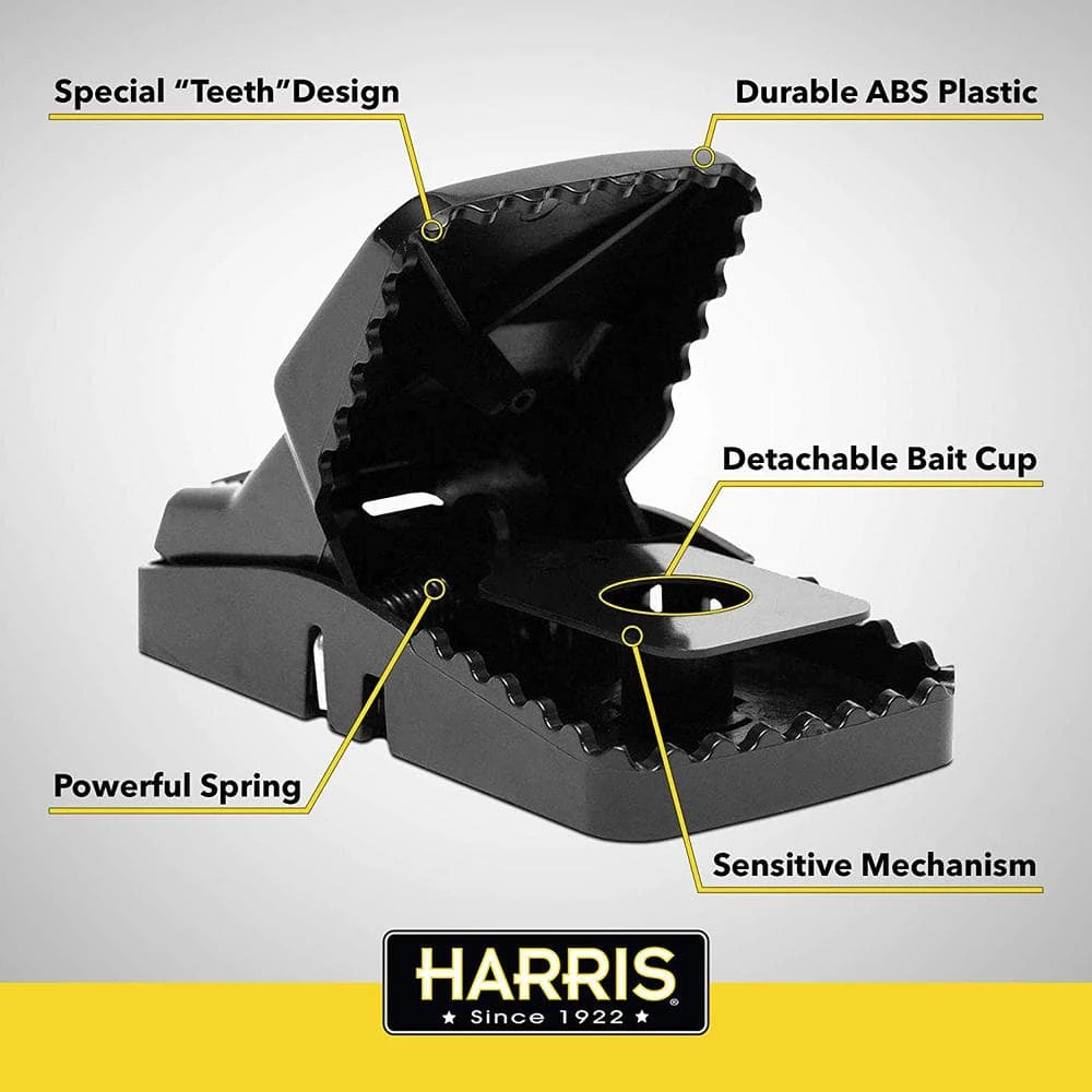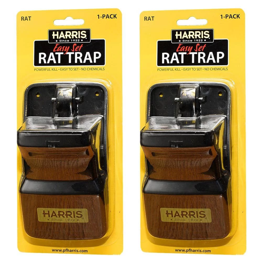 Harris Reusable Plastic Rat Traps kills rats. Traps are easy to use, just bait and press to set. They are durable, reusable and work the first time. The traps are powerful, effective and contain no chemicals. Value 2-Pack treats multiple areas.