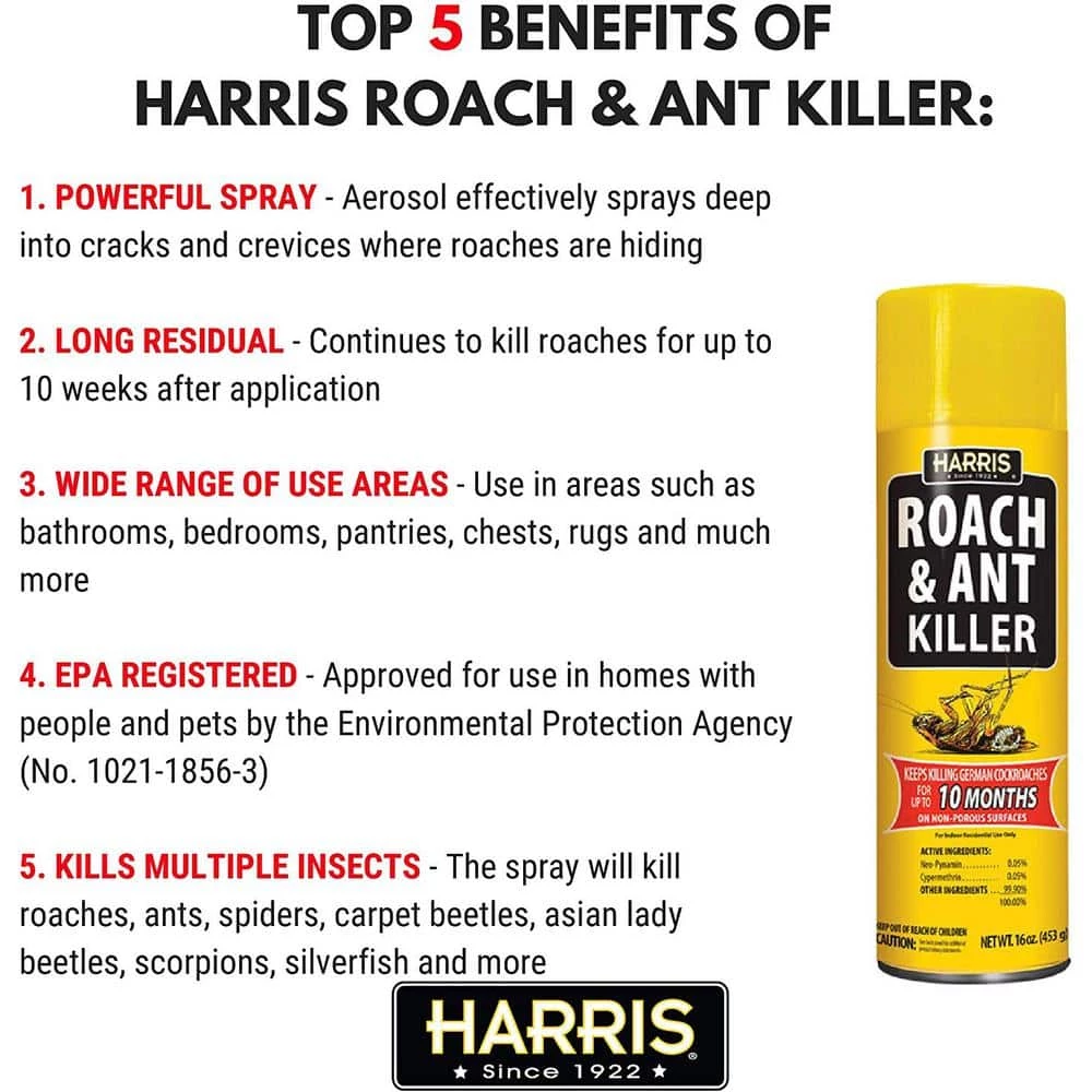 - Roach and ant killer kills roaches, ants, brown dog ticks, black carpenter ants, crickets, fleas, palmetto bugs, silverfish, scorpions, and sow-bugs