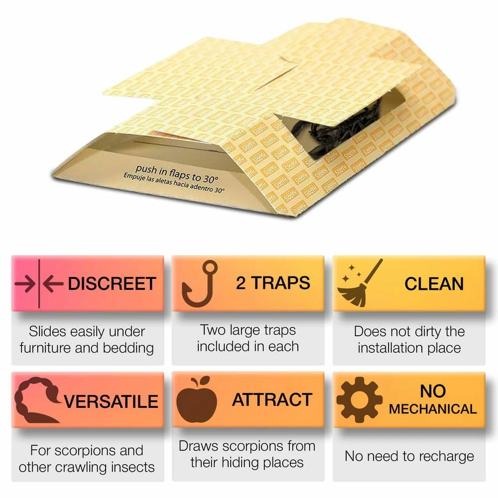 Harris Scorpion Glue Traps catch scorpions and other insects as they emerge from their hiding places. The traps are pesticide-free. They are easy to use, just peel off the protective paper, fold the trap shut and place the trap in locations where scorpions are likely to travel or hide. Good for residential and commercial use. Value 5-Pack treats multiple areas.