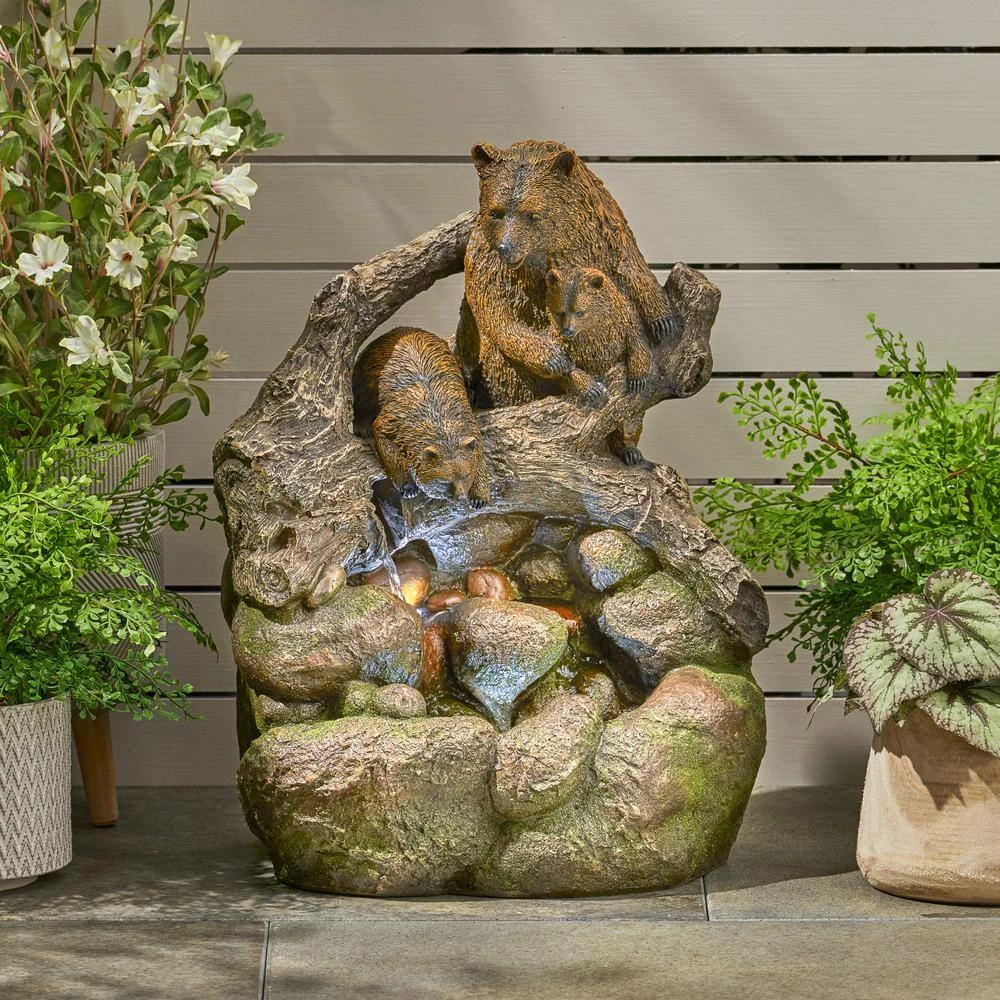 Transform your outdoor space with a crowning statement that is sure to bring a peaceful ambiance. Our garden fountain features a calm waterfall flow that continuously circulates using an included pump, bringing a playful aura to any backyard or patio. Crafted with an incredibly durable polyresin material, this decorative accessory offers a weather-resistant structure that allows outstanding attention to detail. Finished with a family of bears and enchanting underwater lights, our water fountain is sure to add a touch of whimsy to your home.