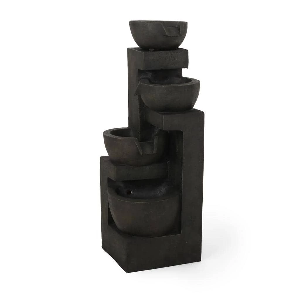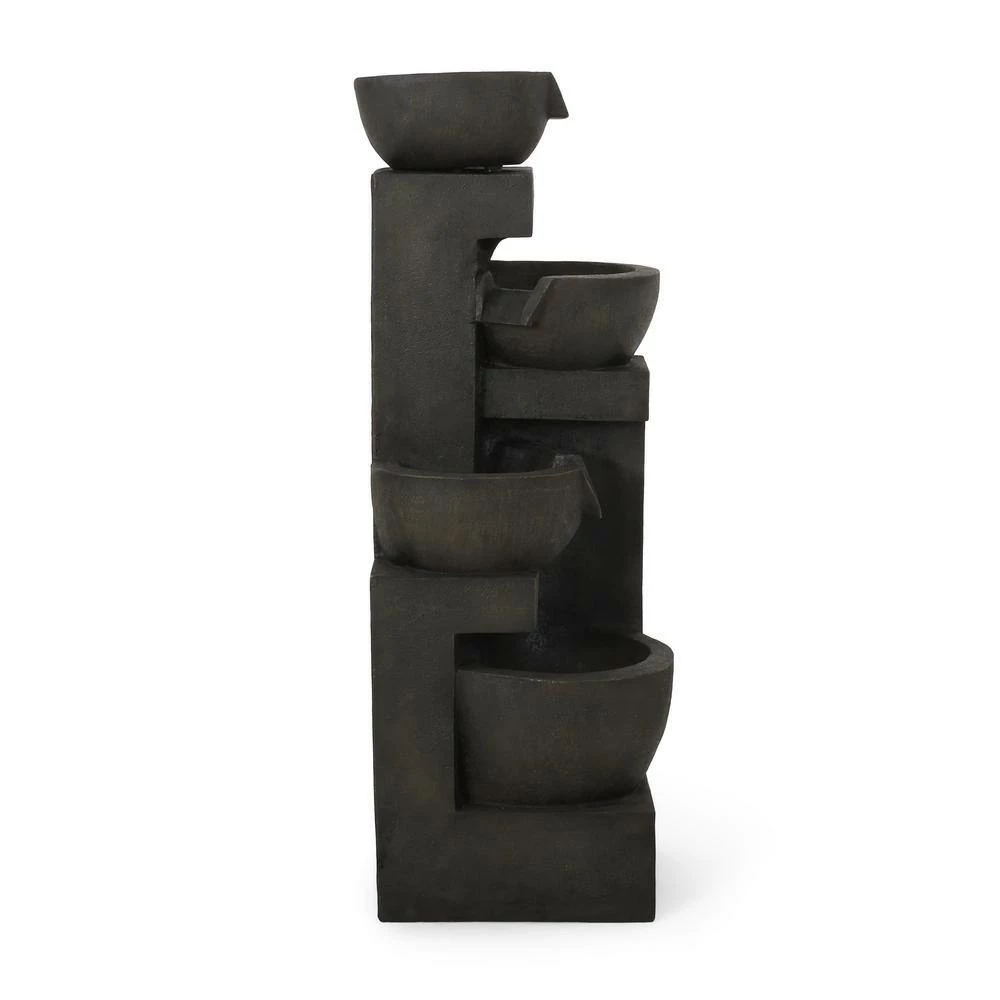Fill your outdoor space with a cascading stream of water to create a meditative atmosphere. Our garden fountain features a calm waterfall flow that continuously circulates using an included pump, bringing a playful aura to any backyard or patio. Crafted with an incredibly durable polyresin material, this decorative accessory offers a weather-resistant structure that allows outstanding attention to detail. Finished a modern 3-tiered design and enchanting underwater lights, our water fountain is sure to add a touch of whimsy to your home.