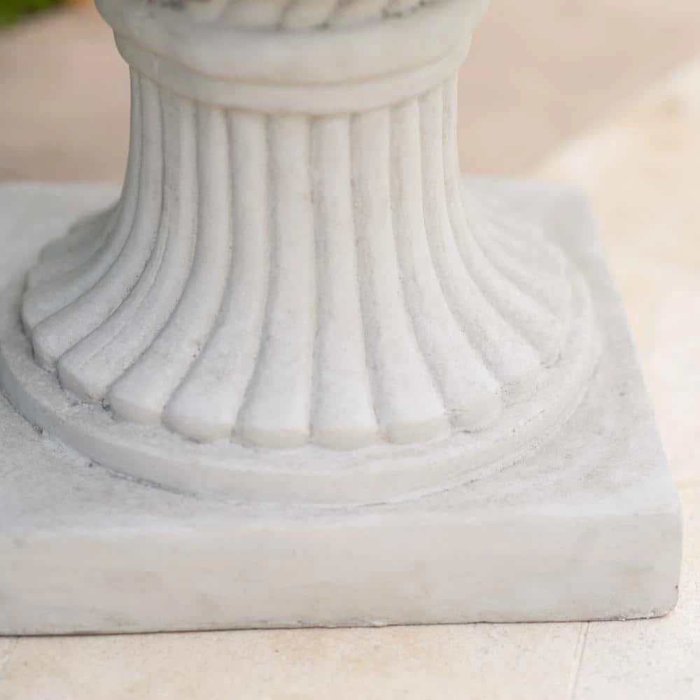 Create a classical tone for your exterior decor with the grand stature of this Italian urn planter. Reminiscent of Roman-style columns, this stately urn features fluting and carved details in an antique white finish for a vintage look. This sturdy cast planter includes a hidden drainage plug, making it compatible for indoor and outdoor spaces alike.
