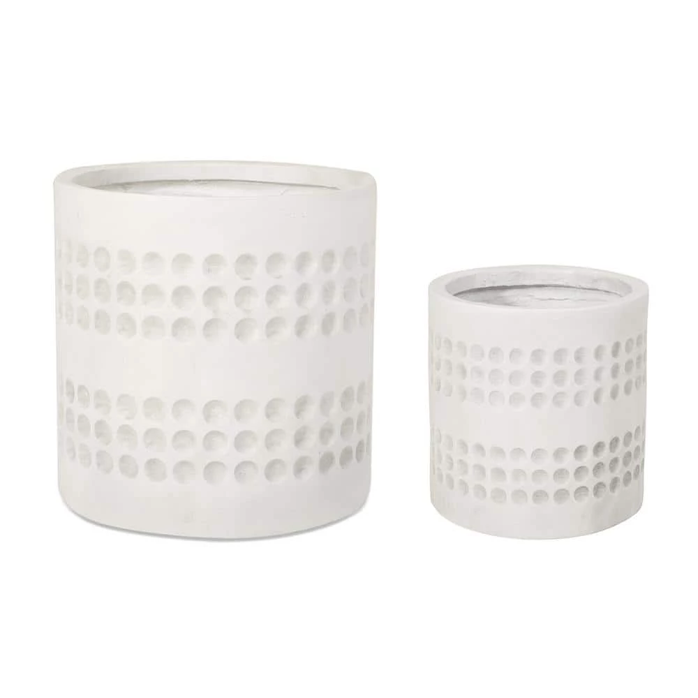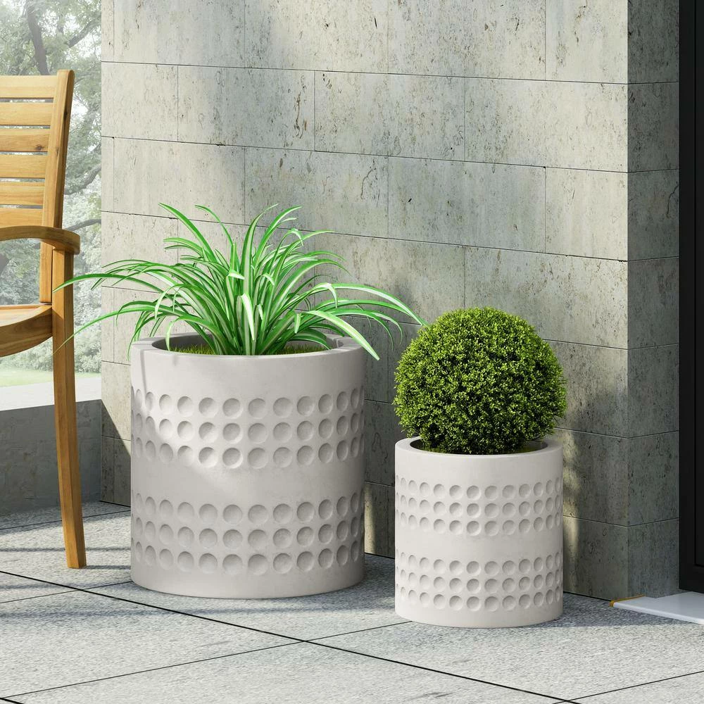 Bring your outdoor decor to the next level. From its beautiful circular pattern to its lightweight concrete structure, our planter set will instantly enhance your patio or backyard space with style. This set comes with one large planter and one small planter, offering a durable construction to ensure that your plants have a stable home to grow. Complemented with a natural stone finish, this planter set is perfectly crafted to hold your plants, making these the ideal accessories for your green thumb.