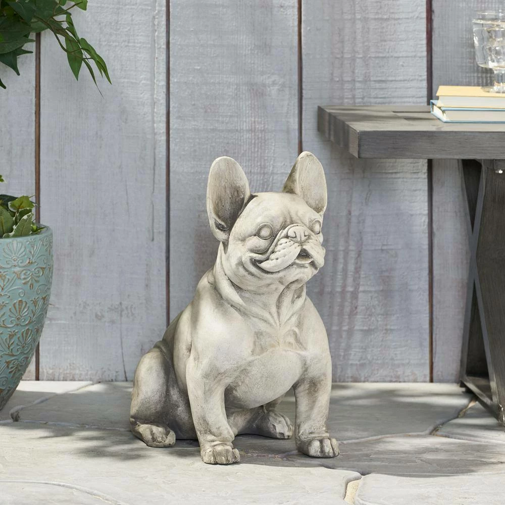 Accent your backyard space with an accessory that will easily have you and your family falling in love. Carefully crafted from cast stone, our garden statue features an incredible French bulldog design consisting of gorgeous details such as pointed ears, round paws, and intricate facial features. This statue offers a durable structure and weather-resistant properties making this a perfect addition to your backyard or patio space. Finished with a neutral wash, this exquisite garden accessory will easily bring your decor to the next level.