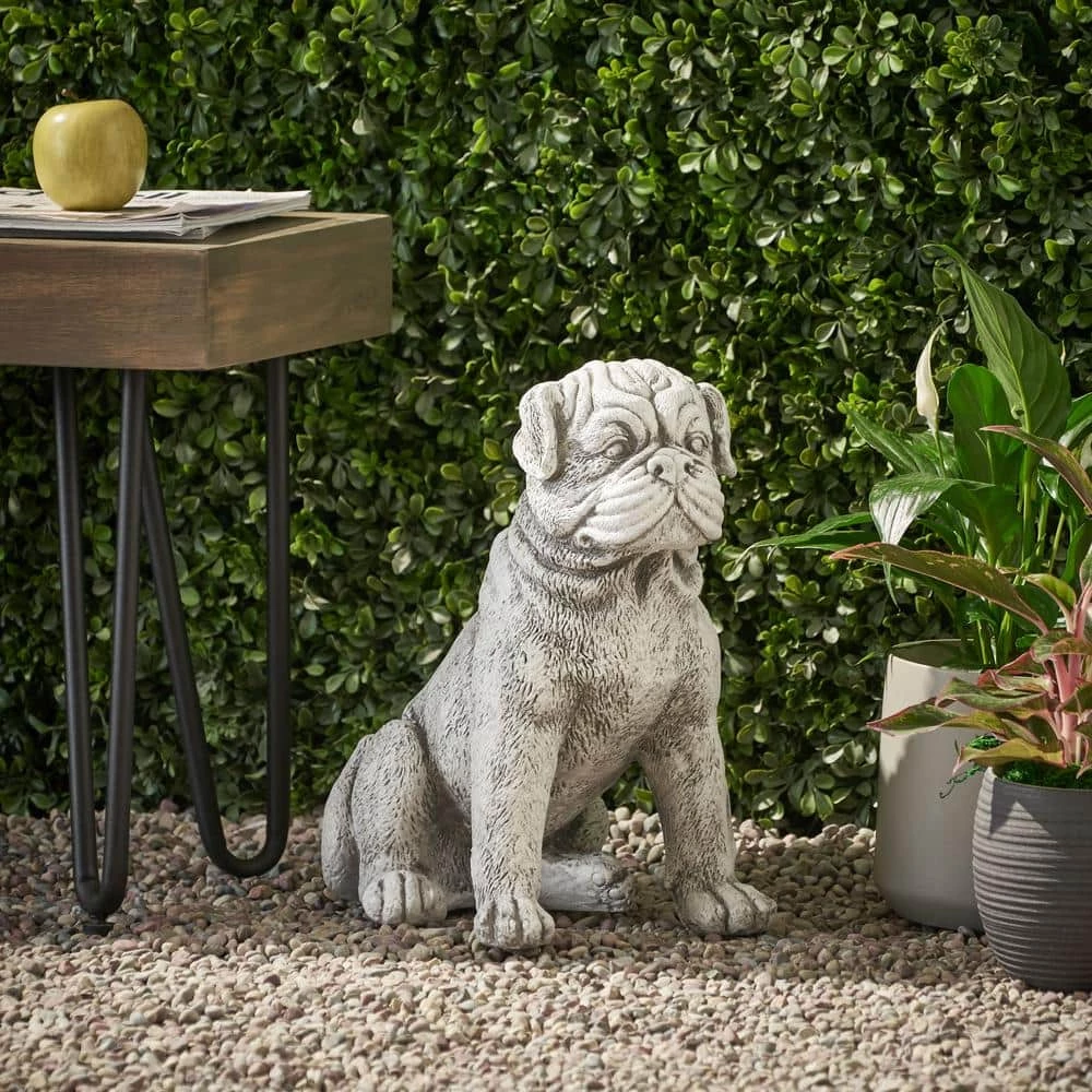 Are you looking to spruce up your outdoor space with a dash of charm? Your decor is in for a treat. Carefully crafted from cast stone, our garden statue features an adorable dog design consisting of charming details such as floppy ears, loveable wrinkles, and a curled tail. This statue offers a durable structure and weather-resistant properties making this a perfect addition to your backyard or patio space. Finished with a neutral wash, this exquisite garden accessory will easily bring your decor to the next level.
