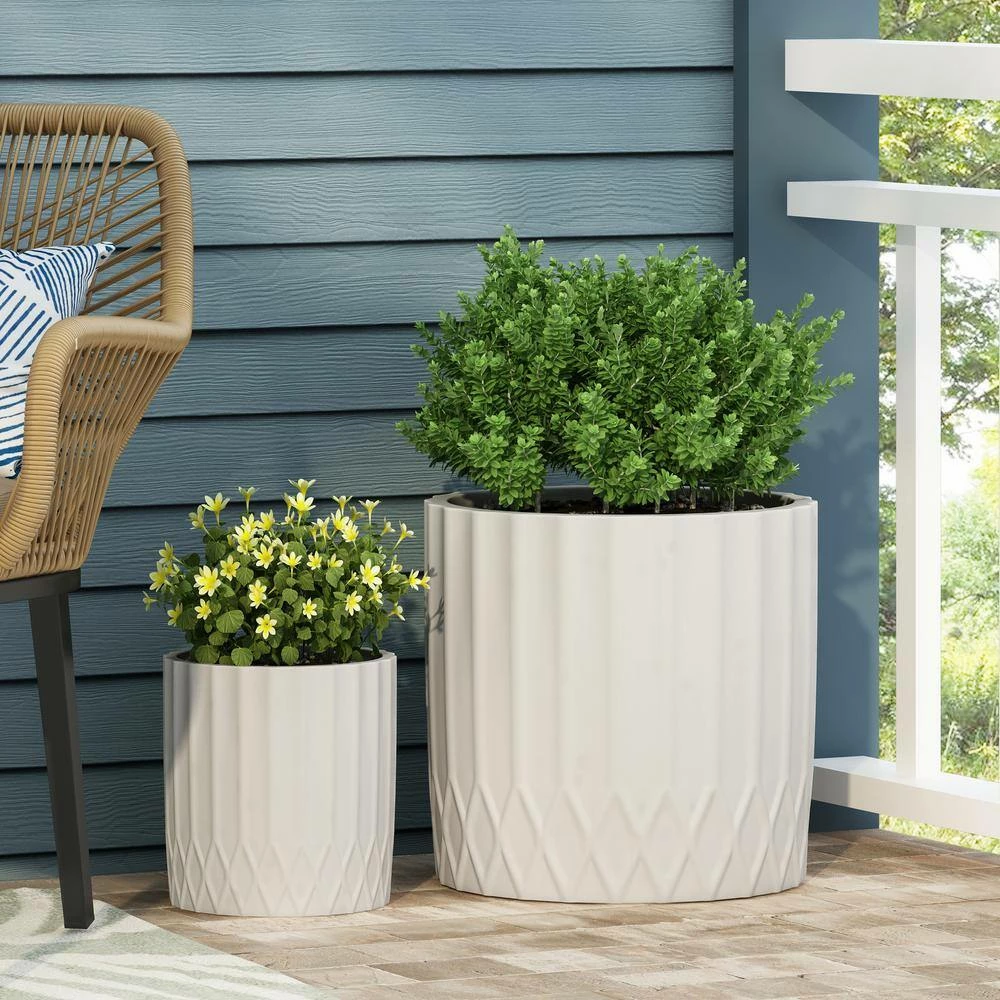 Your outdoor decor can’t go wrong with an accessory this perfect. From its subtly pleated design to its lightweight concrete structure, our planter set will instantly enhance your patio or backyard space with style. This set comes with 1 large planter and 1 small planter, offering a durable construction to ensure that your plants have a stable home to grow. Complemented with a natural stone finish, this planter set is perfectly crafted to hold your plants, making these the ideal accessories for your green thumb.