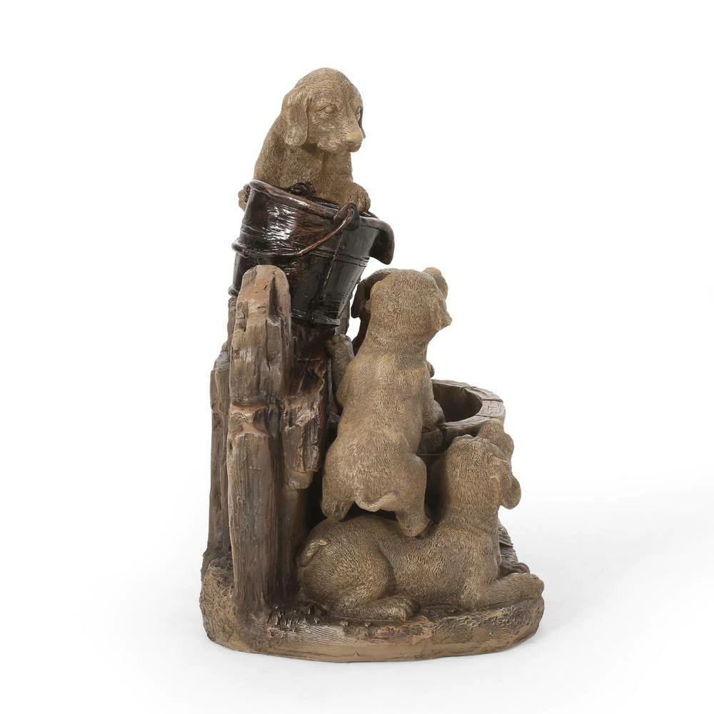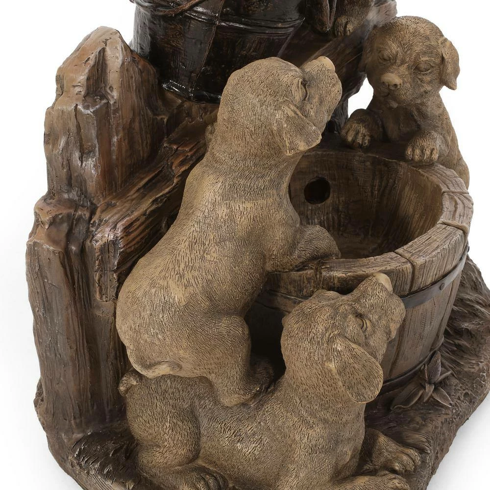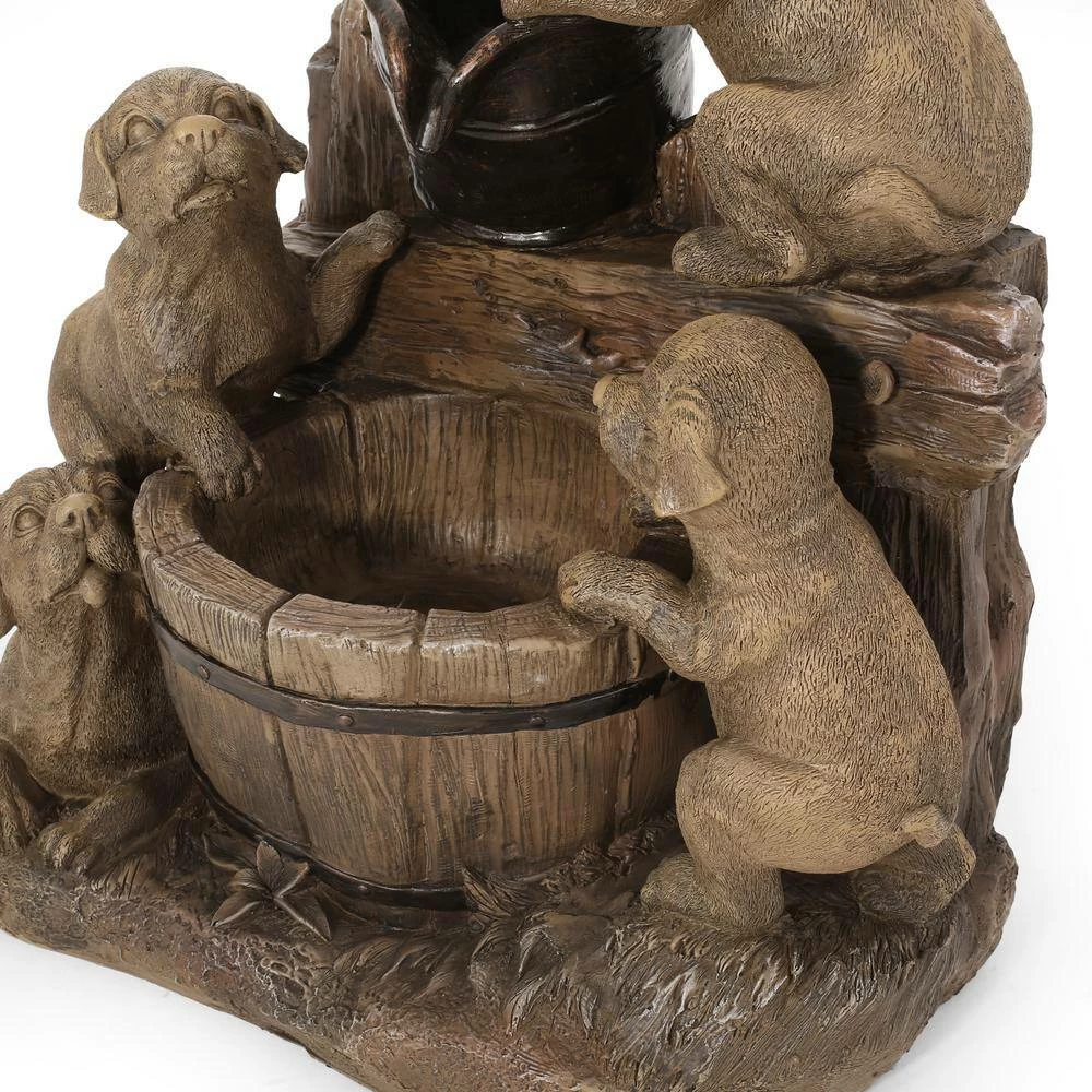 Illuminate your outdoor space with an accessory that brings a delightful look to any home. Our garden fountain features a calm waterfall flow that continuously circulates using an included pump, bringing a playful aura to any backyard or patio. Crafted with an incredibly durable polyresin material, this decorative accessory offers a weather-resistant structure that allows outstanding attention to detail. Finished with 4 adorable puppies and enchanting underwater lights, our water fountain is sure to add a touch of whimsy to your home.