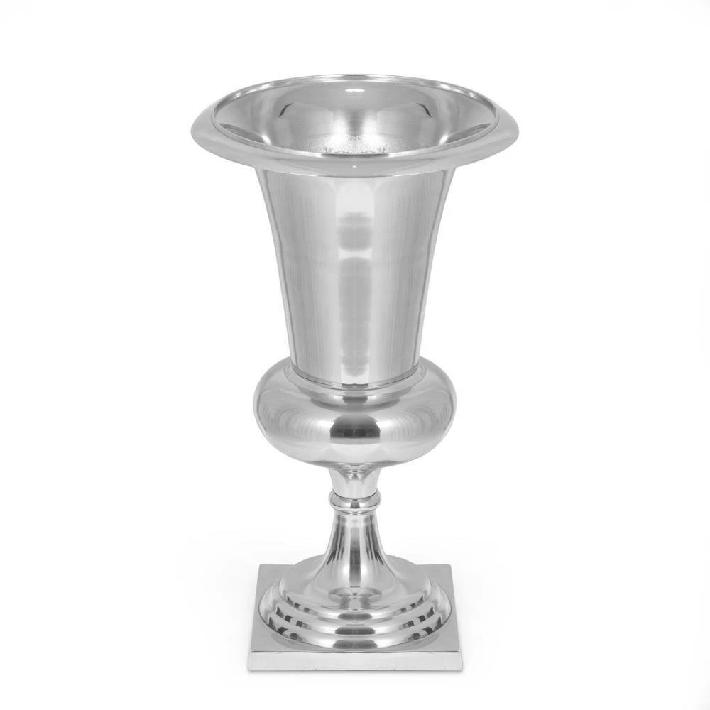 Modern and elegant, accessorize your home decor with eye-catching style. From its stunning trophy-like design to its dazzling silver finish, our planter will instantly enhance your interior space with style. Complemented with a lovely turned base, this planter offers a refined look to a corner in need of an upgrade. This accessory offers a durable aluminum construction to ensure that your plant has a stable home to grow. Perfectly crafted to hold your plants, this piece is the perfect accessory for your green thumb.