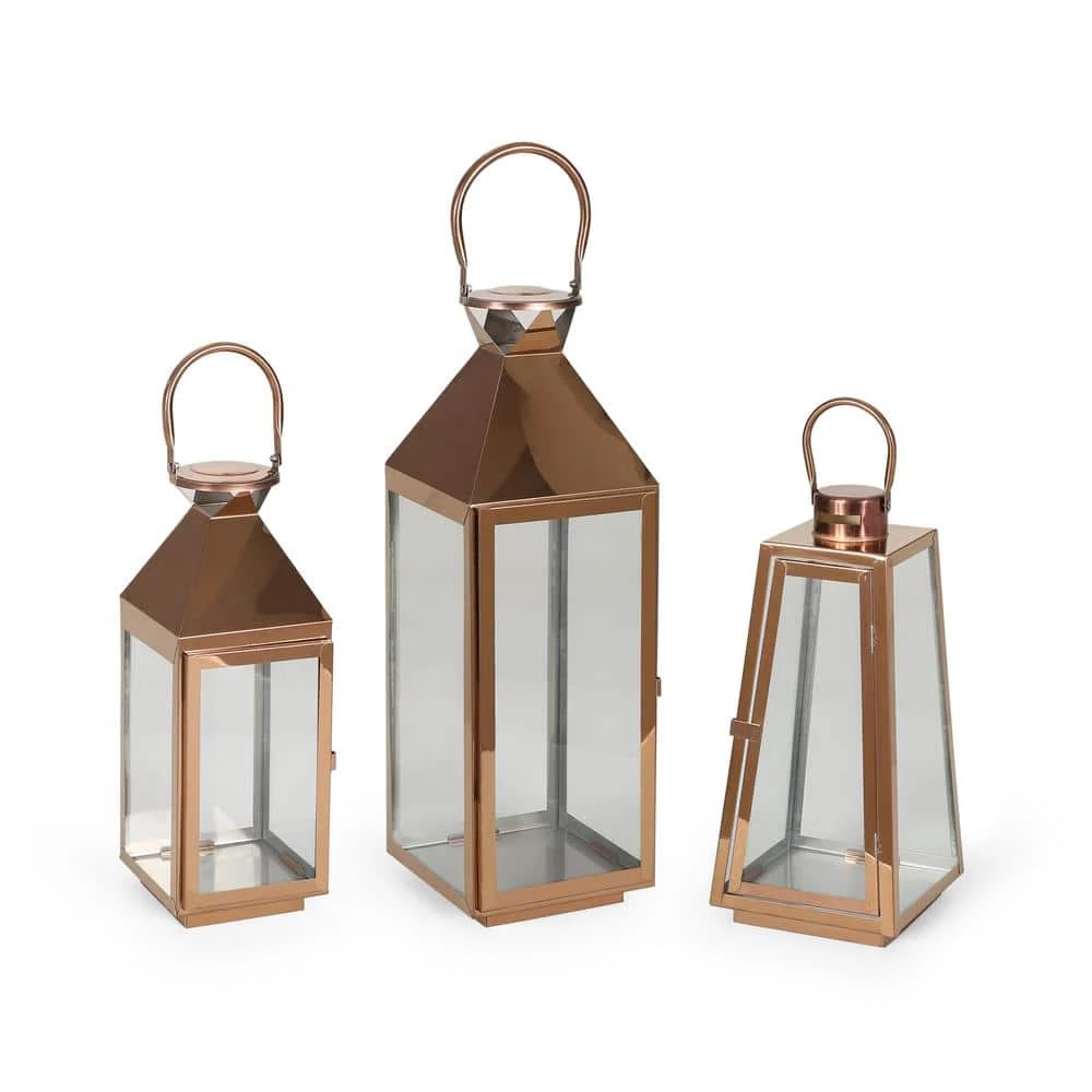 Bring home a comforting and inviting touch to your interior space with a set of sleek accessories. Crafted from stainless steel and tempered glass, our lantern set offers a beautifully refined accent that brings a light and airy feel to your space. These are topped with hanging ring handles that easily allows you to share a bit of brightness and warmth throughout your home. Featuring one small, one medium, and one large lantern, our lantern set will illuminate up your space with charm and style.