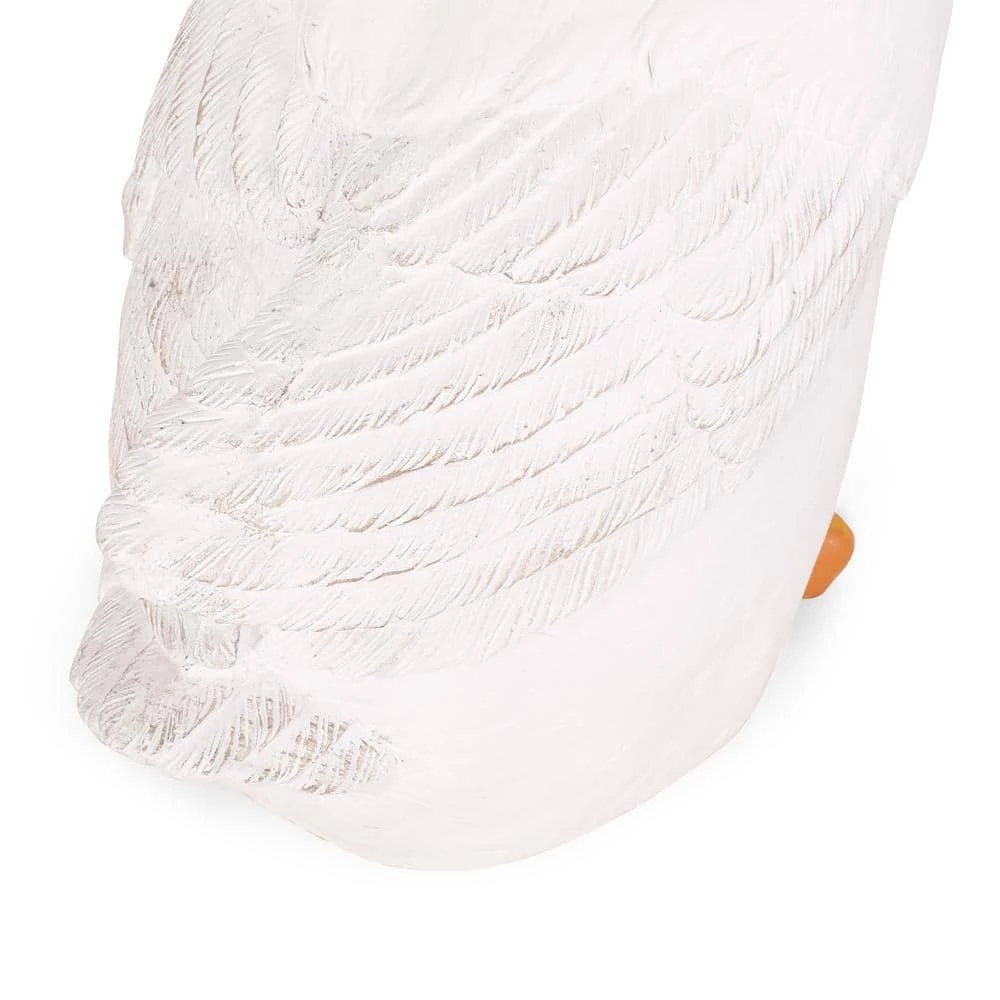 Fill your outdoor space with a playful atmosphere with the help of our delightful accessory. Carefully crafted from cast stone, our garden statue features an adorable goose design consisting of charming details such as feathered wings and a charming bandana bonnet. This statue is created to have a durable structure and its weather-resistant properties make this a perfect addition to your backyard or patio space. Offering a lighthearted look to your garden or porch, this exquisite garden accessory will easily bring your decor to the next level.