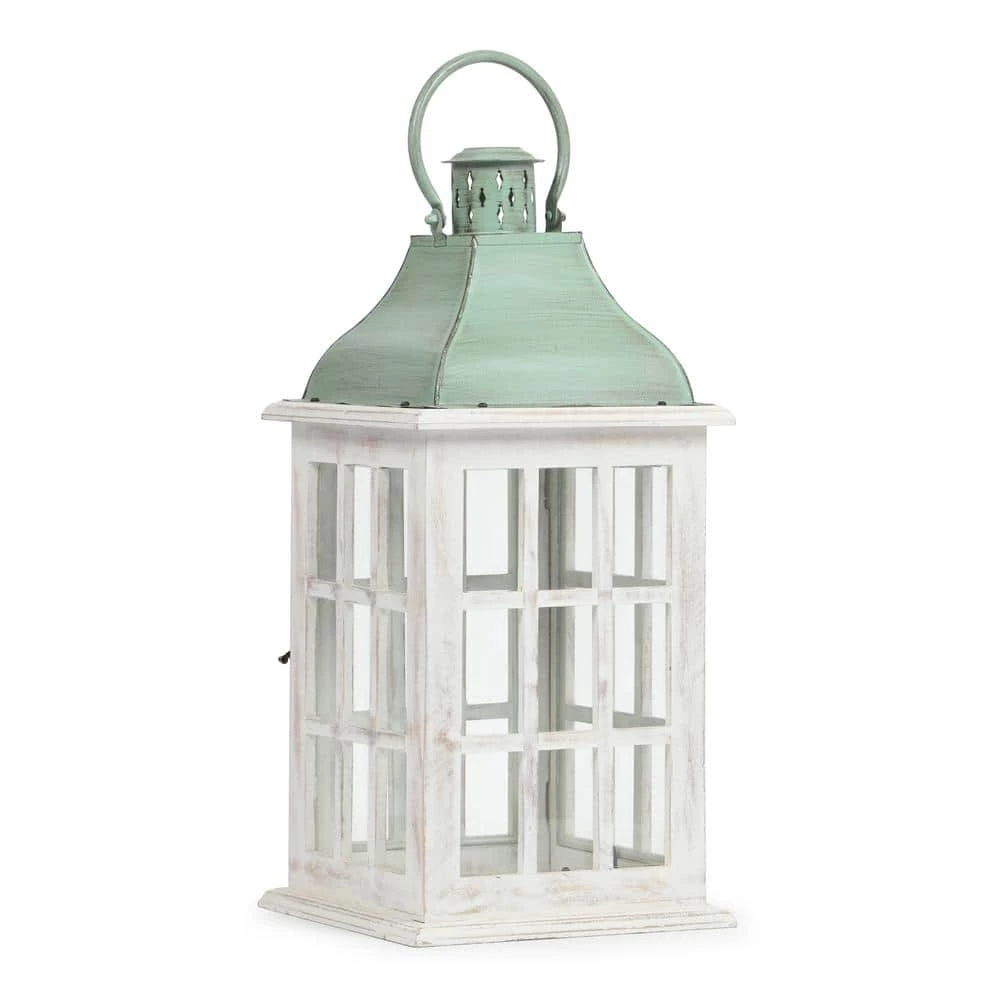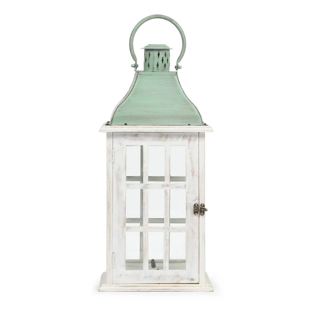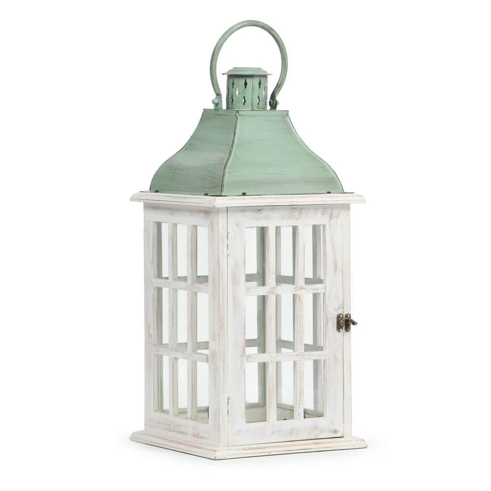 Highlight any occasion or event with an accessory that is the perfect addition to any indoor space. Crafted from mango wood and tempered glass, our decorative lantern offers a beautifully refined accent that brings a light and airy feel to your decor. This is topped with a hanging ring handle and is complemented with a weathered coastal finish. Fill this piece with decorative filler or flameless candles to create a centerpiece or accent piece of your own creation, bringing a vacation-home vibe to your decor.